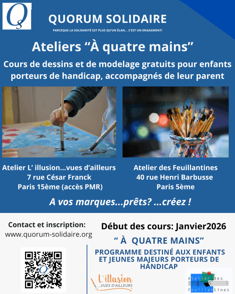 Actualités: Les Ateliers "à quatre mains" commencent en Janvier 2026 - inscrivez-vous !